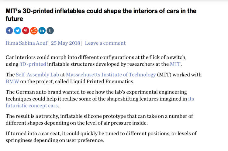 Liquid Printed Pneumatics has been featured in many new outlets including Dezeen, Designboom, Popular Mechanics, Fastcompany, etc.