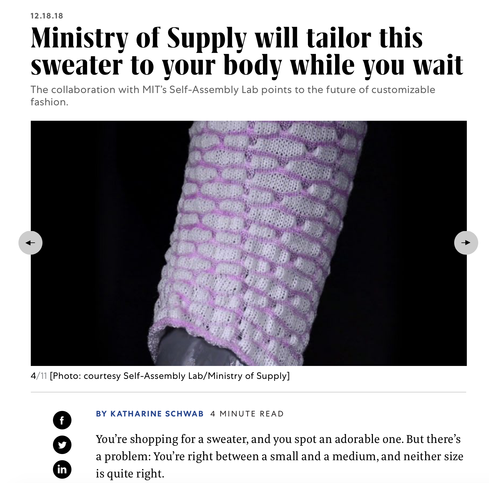 ‘Active Textile Tailoring’ has been featured in an article at Fastcompany.