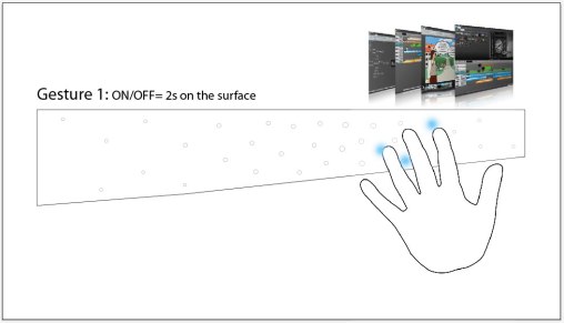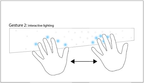 As a material designer, I was thinking about ways to visualize data flow within the ‘object‘. I wanted to create a material that responds and reacts to triggers and shows data movement through light. I interwove smallest LED’s, conductive threads, sensors and monofil to a fabric that soon would function as an interactive dashboard. The co-driver can activate and switch-off the layer of information through a distance sensor integrated in the material. Through different hand gestures information can be transferred to the head-up display of the driver, which was visualized by light points.
