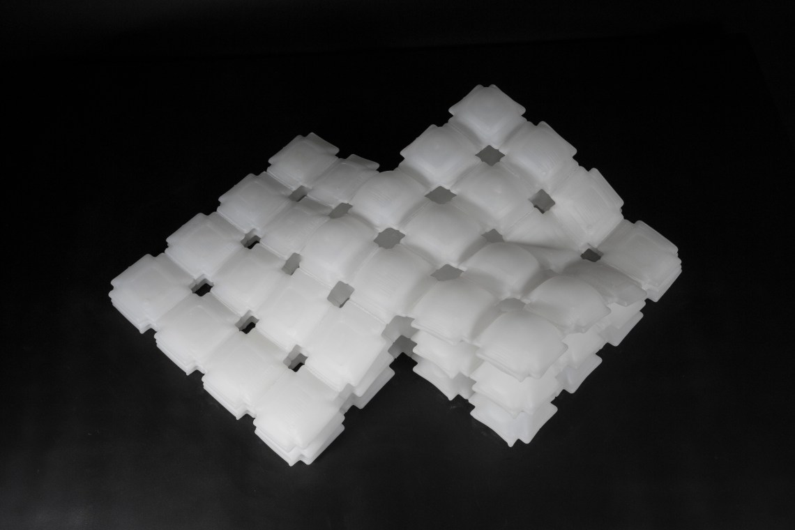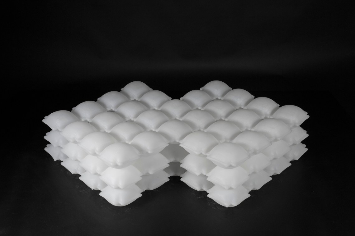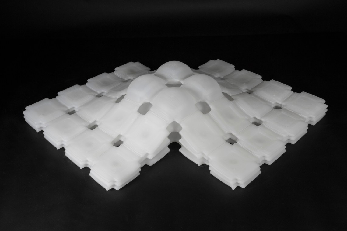 The vision was to create dynamic car interiors, where seats sink away when not needed or transform for adaptive human comfort and cushioning and trim parts can change shape to free up space for passengers to enjoy a range of activities while they travel fully autonomous. The silicone printed object is made out of 3D printed air and water-tight chambers that can change shape depending on the amount of air pressure in the system. The pneumatic controls allow the printed structure to transform into a variety of shapes, functions or stiffness characteristics.